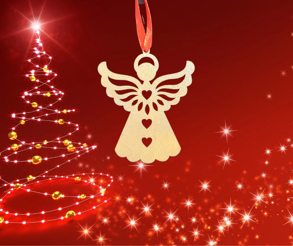 Lézervágott fa karácsonyi dísz angyalka mintával. Természetes fa, részletgazdag kivitel, amely meghitt és ünnepi hangulatot teremt a karácsonyfán. Tartós, időtálló dekoráció, tökéletes ajándék családtagoknak és barátoknak. A termék mérete 9*7,5 cm.