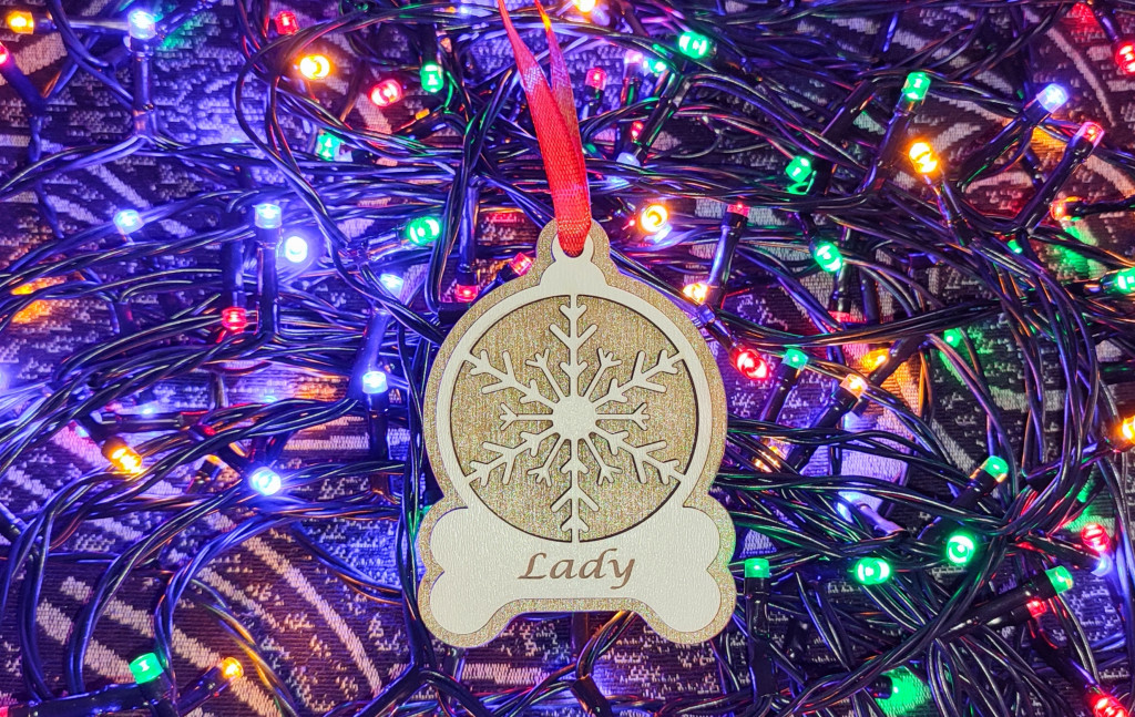 Lézervágott 3D hatású fa karácsonyi dísz csont mintával, kis kedvenc nevével gravírozva. Természetes fa, részletgazdag és személyre szabható dekoráció karácsonyfára. Tartós, időtálló, tökéletes ajándék kutyabarátoknak. A termék mérete 8*6 cm.